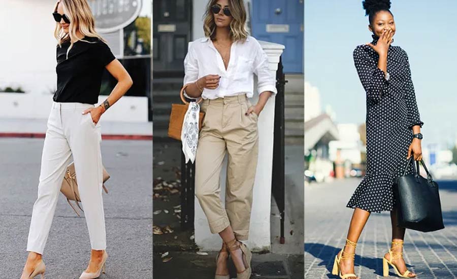 Em ambientes formais, devem buscar sobriedade e apostar em cores neutras e evitar decotes, transparências, minissaias, blusas que deixem a barriga à mostra, sandália rasteira, saltos muito altos (agulhas), cabelo molhado ou mal cuidados e unhas com esmalte descascado;