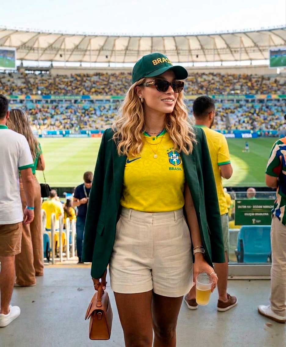 Também vale considerar a paleta de cores na hora de montar o visual. Como a camisa da seleção já possui tons marcantes, como o amarelo, o azul e o verde, combinar com peças neutras pode trazer equilíbrio. Por outro lado, quem gosta de ousar pode apostar no mix de cores e até em propostas mais fashionistas, criando um visual autêntico e cheio de estilo.