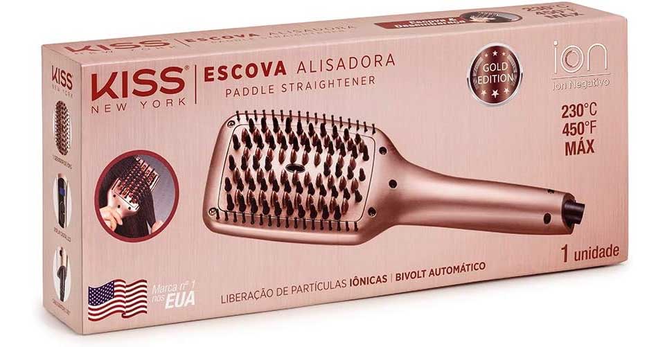 A Escova Alisadora da Kiss New York, alisa, desembaraça e escova os seus cabelos de forma natural, perfeito para todos os tipos de cabelos. Com a liberação de partículas iônicas do centro da escova, mantêm seus cabelos saudáveis, macios, sedosos e livre de FRIZZ.
