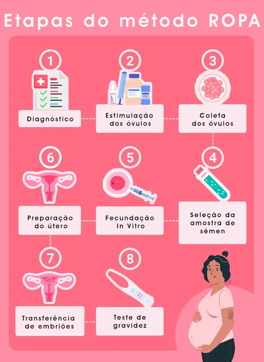 O método ROPA é uma variação da fertilização in vitro (FIV). Esse procedimento inovador permite que a maternidade seja compartilhada entre duas mulheres, proporcionando uma experiência de participação conjunta e direta na criação da nova vida.