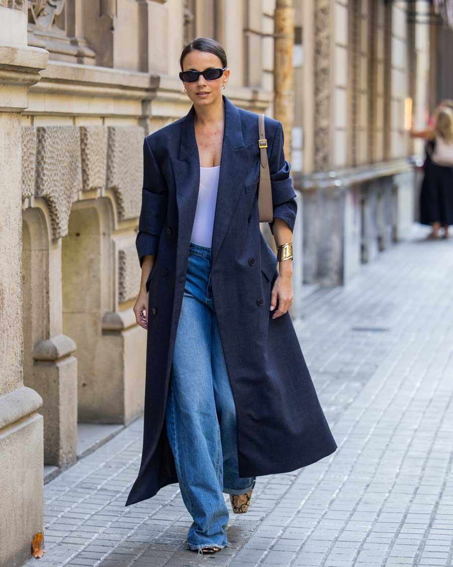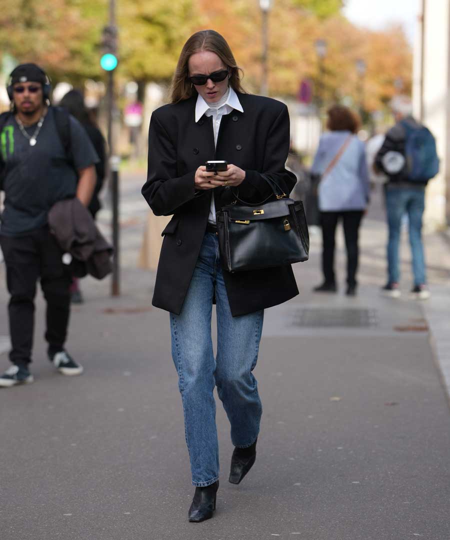 Uma combinação clássica e discreta. Nesta temporada, blazers com ombreiras e modelos oversized em cores neutras como preto, azul-marinho ou cinza estão especialmente em alta.