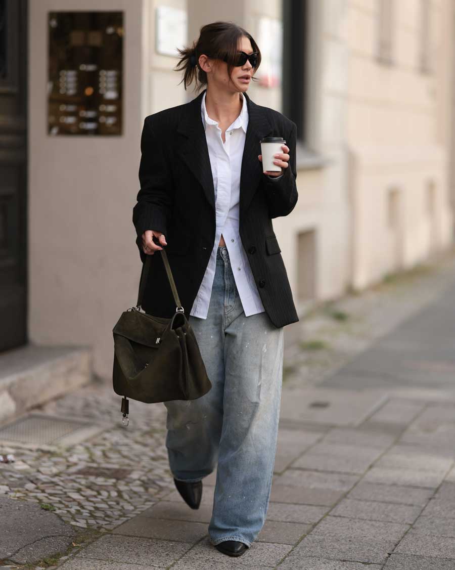 Sim, é uma das combinações mais antigas da história da moda, mas quando você sabe como adicionar seu toque pessoal, o resultado pode ser deslumbrante. Opte por um modelo oversized, desabotoe alguns botões e complemente o look com joias marcantes. Cada detalhe faz a diferença.