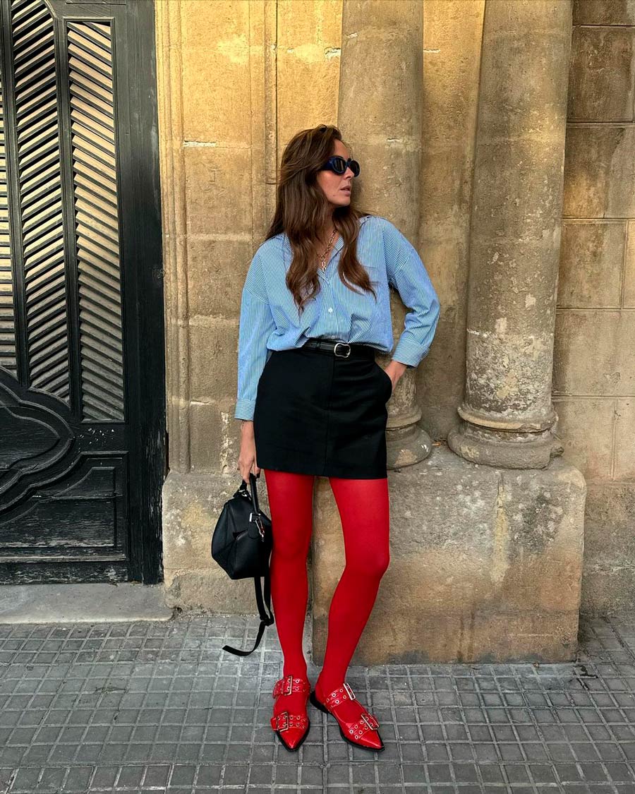 Deixamos algumas ideias para usar meia-calça vermelha neste inverno. Você se atreve?