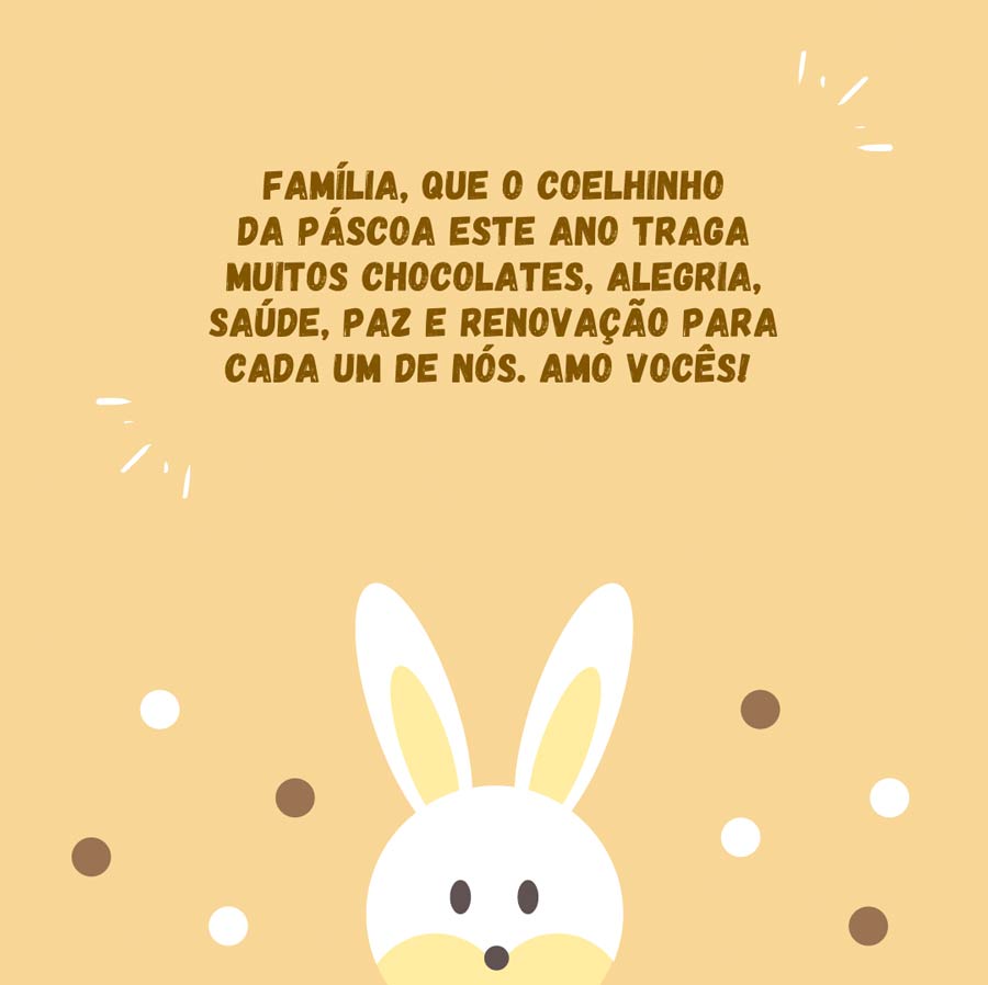 34. Desejo a vocês uma Páscoa abençoada, repleta de paz, amor e muita união familiar.