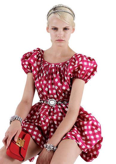 A maioria das marcas mostram suas coleções de Resort voltadas para a praia e a Miu Miu resolveu fazer algo diferente…pensou em uma coleção para férias. Com uma inspiração bem anos 80’s com muita renda, acessórios, glitter, estampa vichy e cores vibrantes. Deixando a mulher bem feminina. Amei!