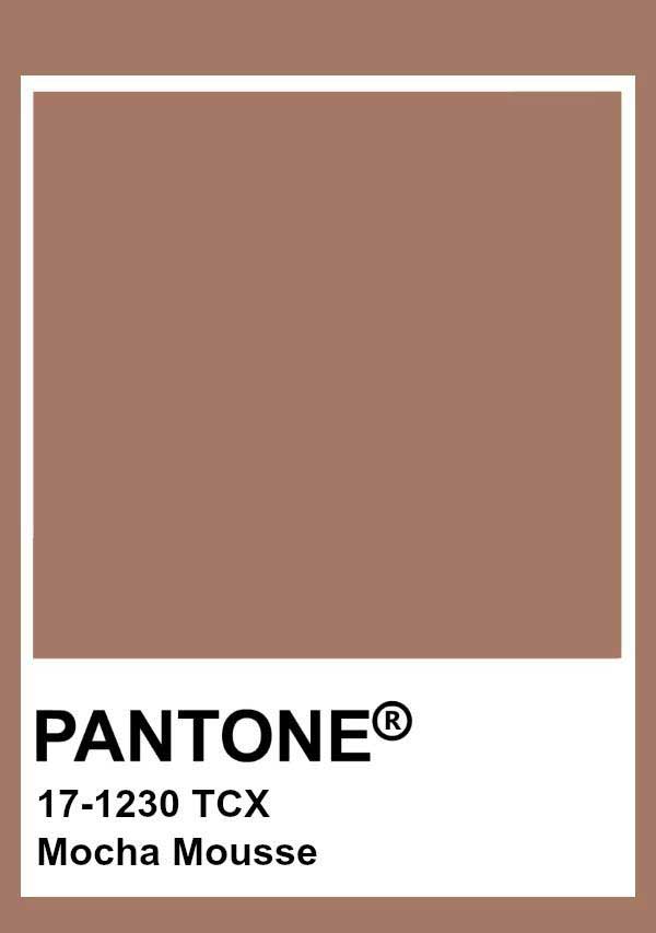 Mocha Mousse: Para 2025, o Pantone Color Institute seleciona PANTONE 17-1230 Mocha Mousse, um tom marrom quente e imbuído de riqueza. Ele nos nutre com sua sugestão das qualidades deliciosas do chocolate e do café, respondendo ao nosso desejo por conforto.