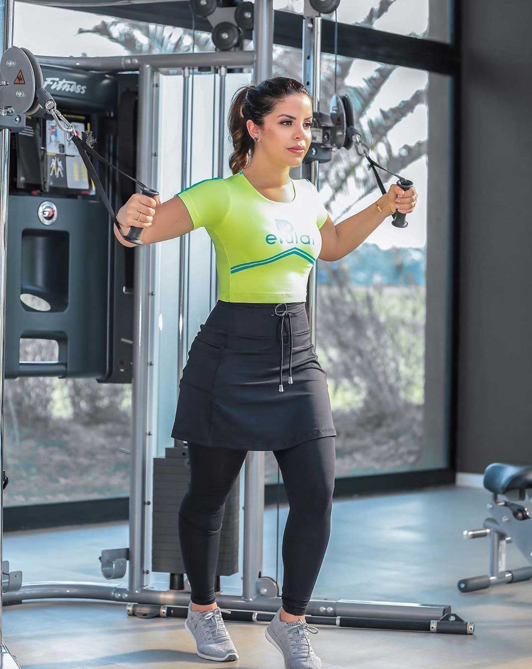 • Macaquinho com Saia: Para um visual super estiloso, aposte em um macaquinho com saia, perfeito para brilhar na academia.