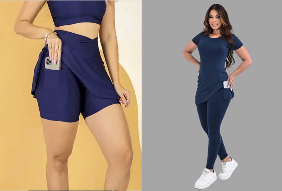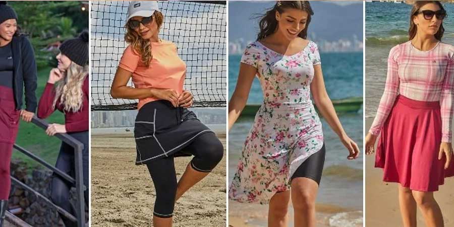 • Leggings com Saia Embutida e Saias-Calça: Essas peças proporcionam uma cobertura extra nas áreas das coxas e quadris, combinando praticidade com um toque de modéstia.