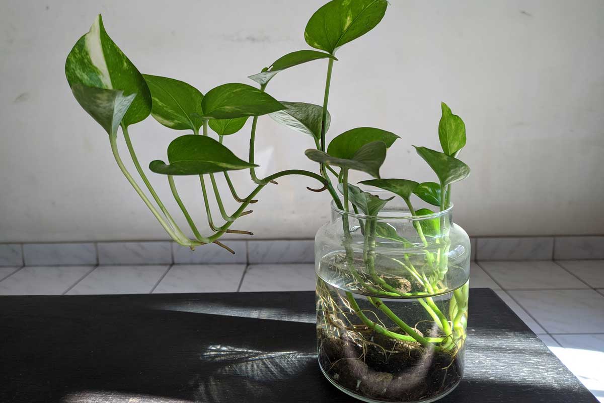 A jiboia é uma das plantas mais práticas para cultivar na água. Basta colocar um galho saudável em um vaso e esperar o surgimento das novas raízes.
