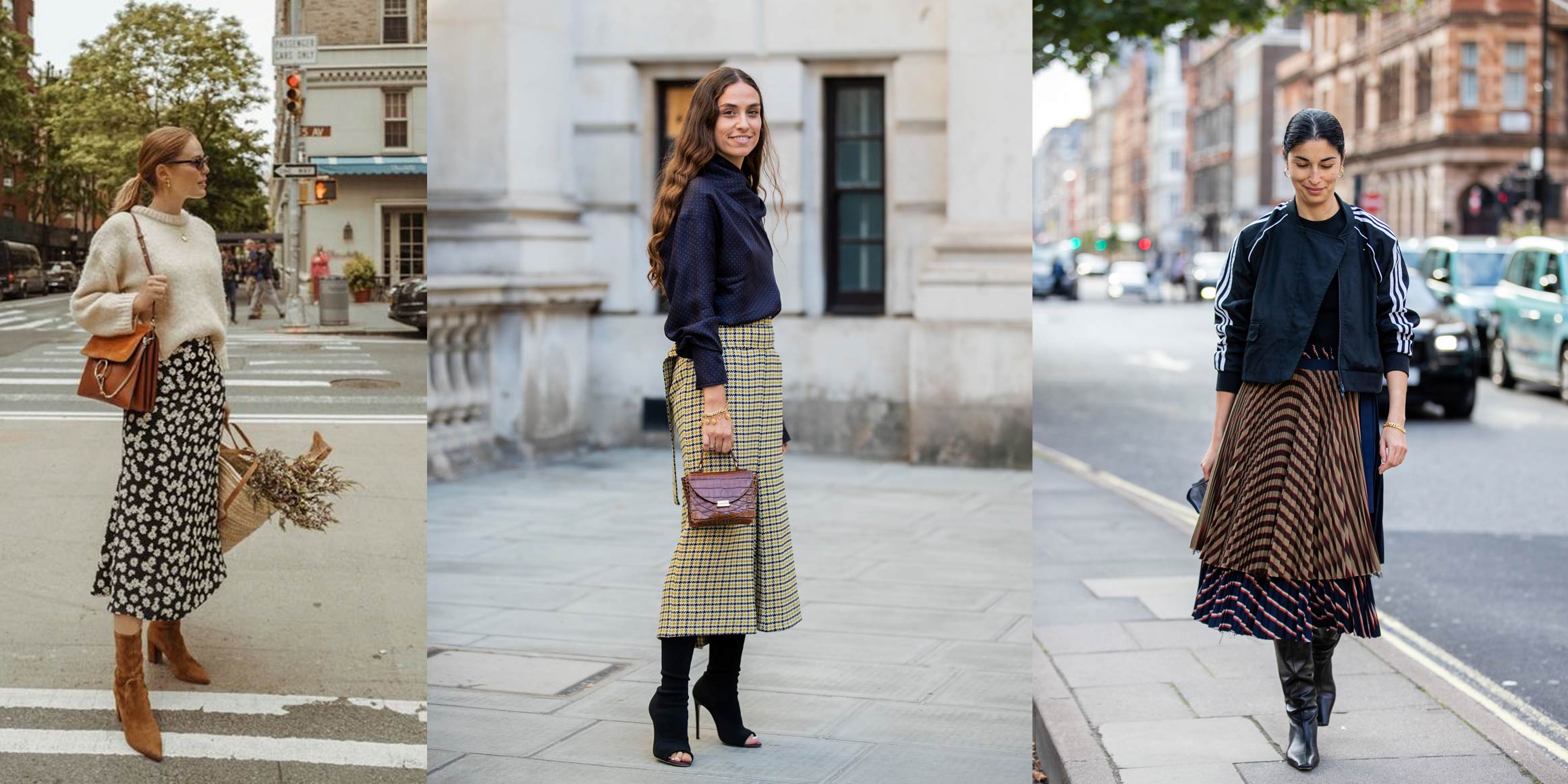 Para abusar da saia midi no inverno, aposte da meia-calça com botas de cano curto, scaprins ou até mesmo sandálias mais pesadas.